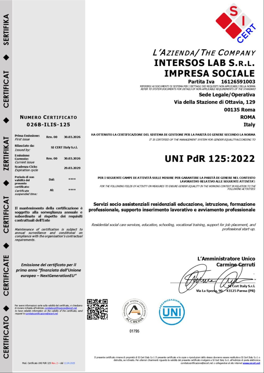 Certificazione UNI PdR 125:2022